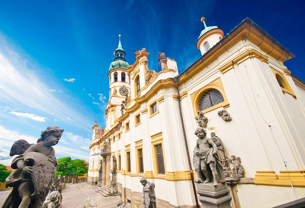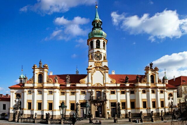 Грандиозный храмовый комплекс эпохи барокко притягивает толпы паломников с Европы. Старинная легенда гласит, что церковь возникла благодаря вере одной чешской дворянки. Святыней и главной достопримечательностью сооружения является Святая Хижина. По преданиям в ней жила и услышала пророчество о рождении Спасителя сама Дева Мария.Около хижины расположен целый ансамбль закрытых зданий. Он украшен аркадным двором, где находится костел божьего рождения, обладающая целительными свойствами чудотворная икона. В сокровищнице пражской Лореты сохранилась серебряная готическая чаша, большая монстранция с более 6000 алмазов, эбеновый алтарь.