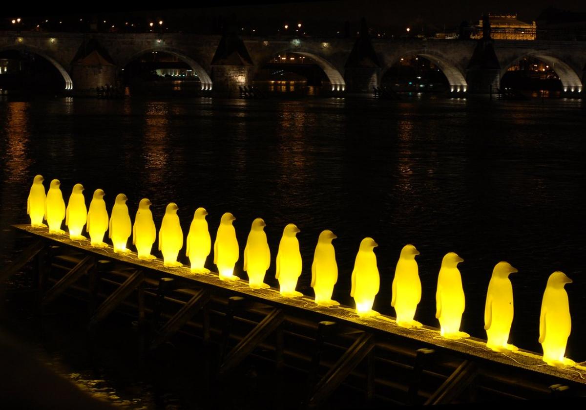 Недалеко от галереи Кампа на помостье выстроились в ряд 34 желтых силуэта. Фигурки этих пингвинов выполнены из переработанного пластика. В вечернее время скульптуры подсвечиваются светодиодами. Выглядит очень красиво, необычно. Инсталляция придумана для того, чтобы человек задумался о возможных экологических катастрофах, стоящих на повестке дня. Речь идет о вымирании обитателей подводного мира, глобальном загрязнении мирового океана.