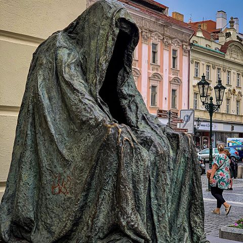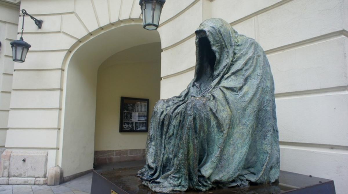 Немного странная и зловещая скульптура в темном плаще расположилась с левой стороны у входа Сословного театра. Безмолвный стражник здания олицетворяет Командора – героя пьесы Моцарта «Дон Жуан». Композицию называют «Плащ совести». Создавшая ее скульптор Анна Хроми объясняет смысл так: уходя из этого мира, человек оставляет после себя особенный вечный след, никак не связанный с материальными ценностями. Чувства врезаются в память, а земля хранит бестелесный дух, который и окутан плащом символичного Командора.