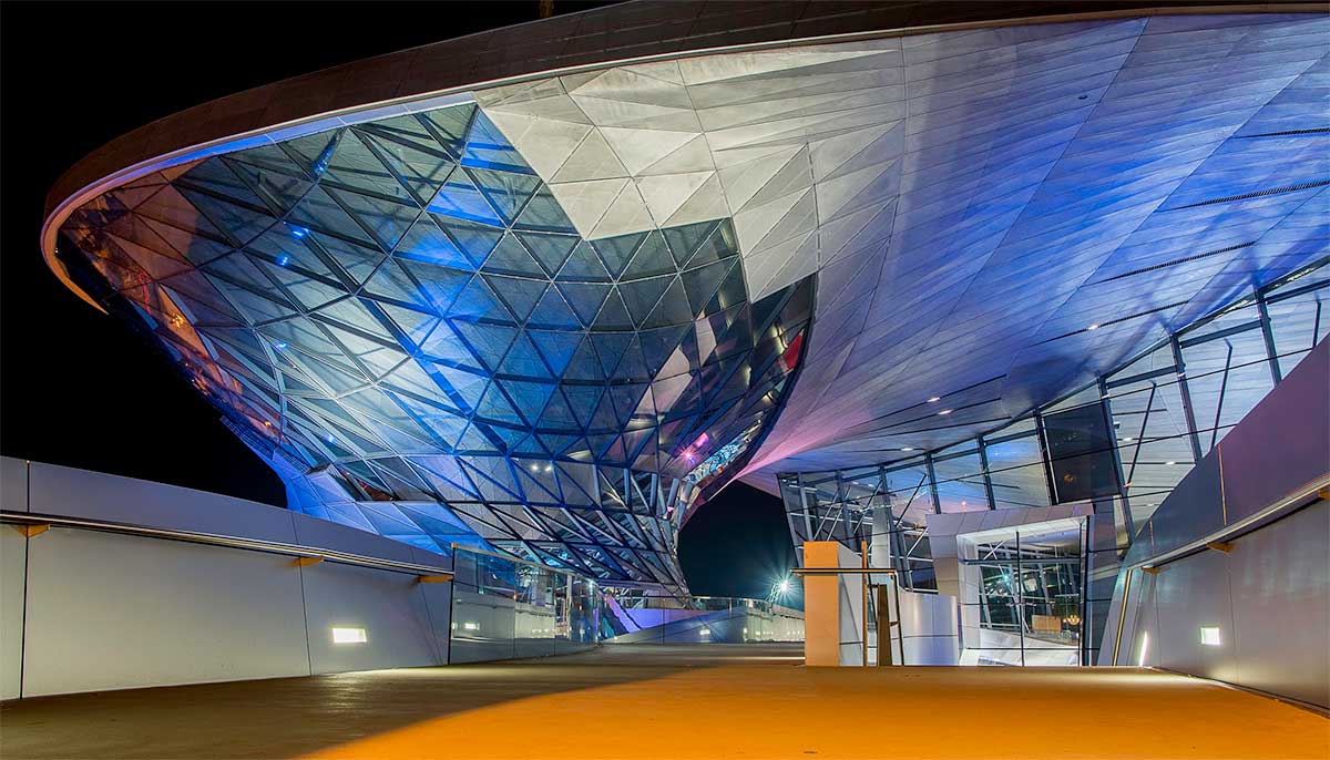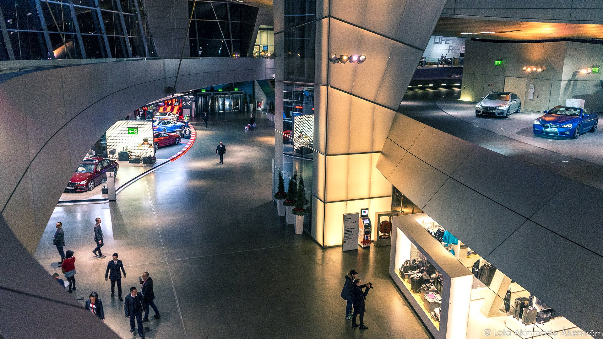 Те, кто не удовлетворится просмотром старинных машин, могут прямо с верхнего яруса музея попасть по подвесному мостику в BMW Welt, постоянно действующий крупнейший автосалон, где можно увидеть самые новые разработки.