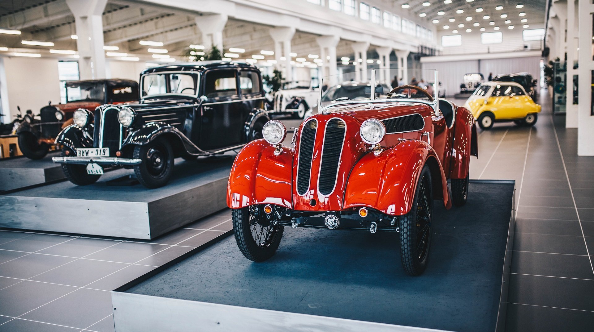 На уровнях музея выставлены родстеры, купе и седаны разного возраста, первый мотоцикл производства BMW, не вышедшие в серию прототипы прошлых лет. Здесь можно увидеть самые экстравагантные автомобили, которые когда-либо ездили по дорогам, такие как минимашина-пузырь Izetta с панорамными стеклами. Эта послевоенная малолитражка, практически мотоколяска, спасла компанию от банкротства после Второй мировой войны.В последнем зале музея туристы могут наблюдать удивительную инсталляцию: тысячи блестящих стальных шариков, спускающиеся на лесках с потолка. Они двигаются и образуют различные сложные формы, включая и модель раритетного автомобиля BMW.